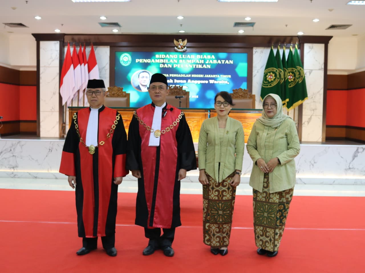 Ketua Pengadilan Tinggi Jakarta, Nugroho Setiadji, melantik dan mengambil sumpah jabatan Iwan Anggoro Warsita, S.H., M.Hum. sebagai Ketua Pengadilan Negeri Jakarta Timur Kelas 1A Khusus (24/10/2025).