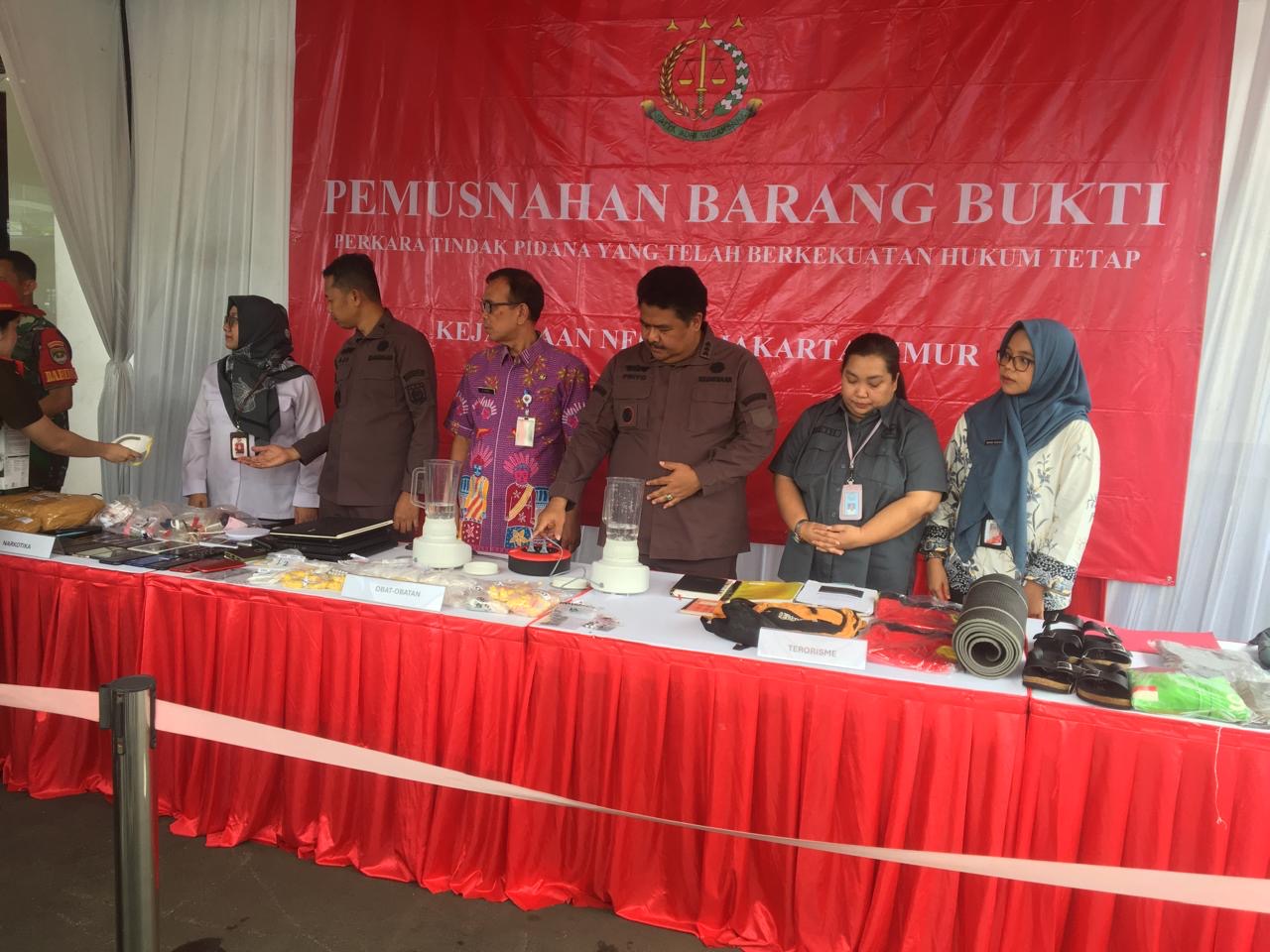 Kepala Seksi Intelijen Kejari Jakarta Timur Yogi Sudhardono mengatakan barang bukti yang dimusnahkan berasal dari 158 perkara, meliputi tindak pidana narkotika, terorisme, pelanggaran ketertiban umum dan keamanan negara (Oharda dan Kamnegtibum) dan pelanggaran UU Kesehatan.